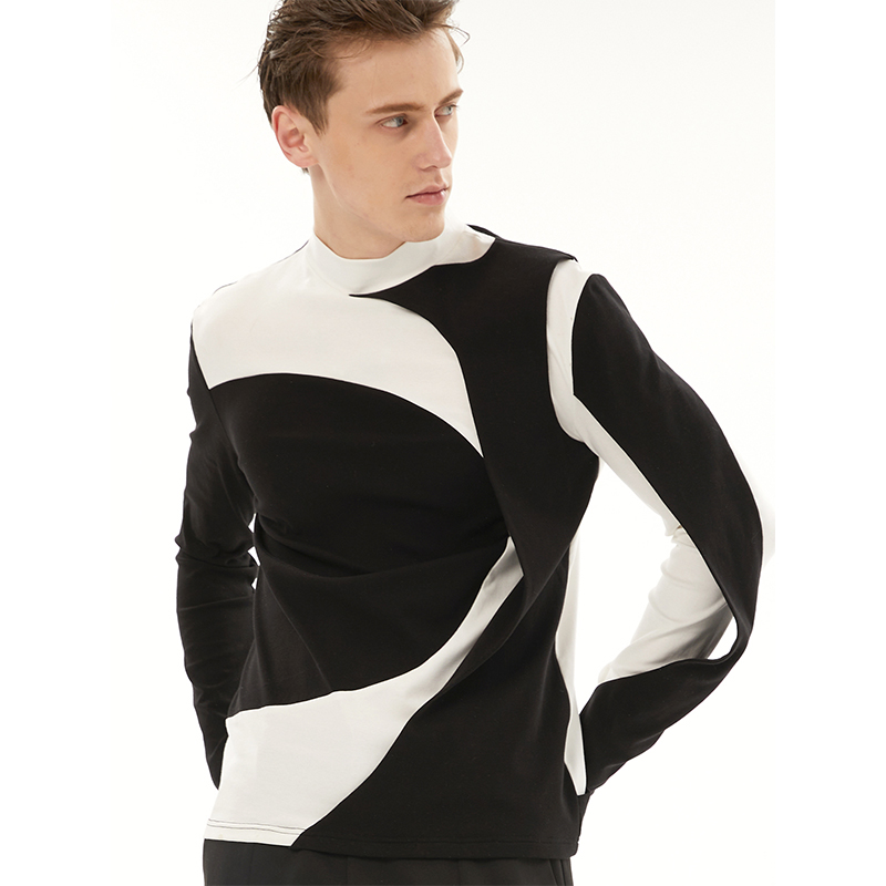 TIWILLTANG启世录 SETS 结构层次精梳棉黑白长袖T恤